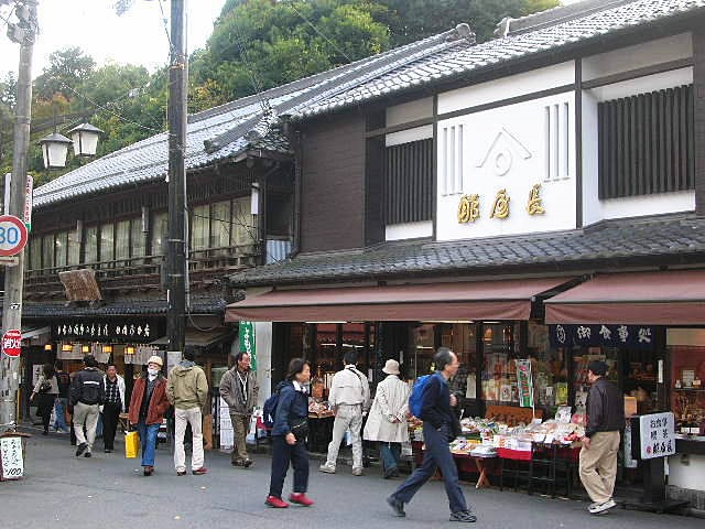 光彦と有里は長谷寺山門の近くで葛きりを食べた(桜井市)
